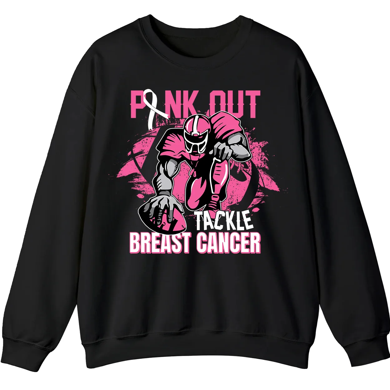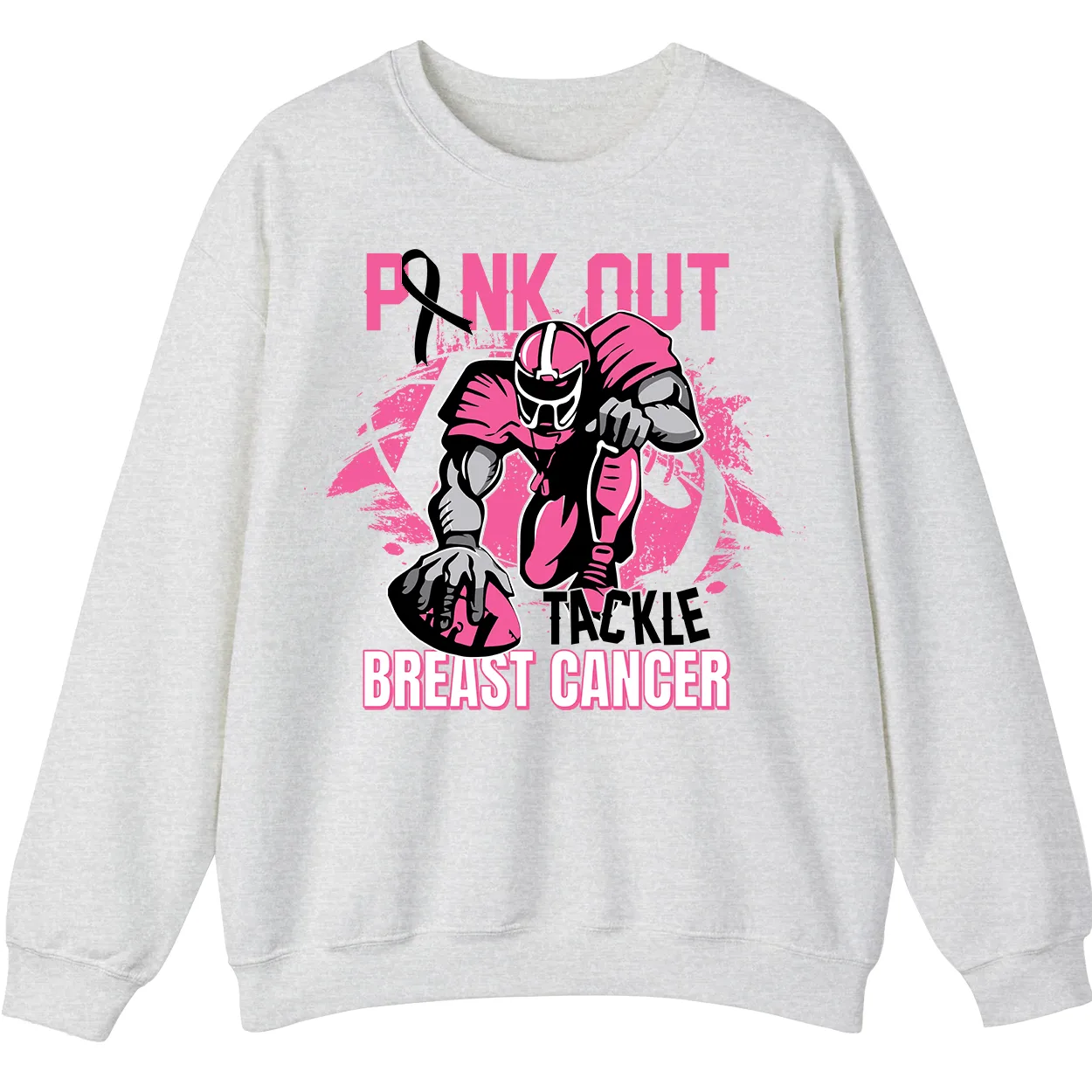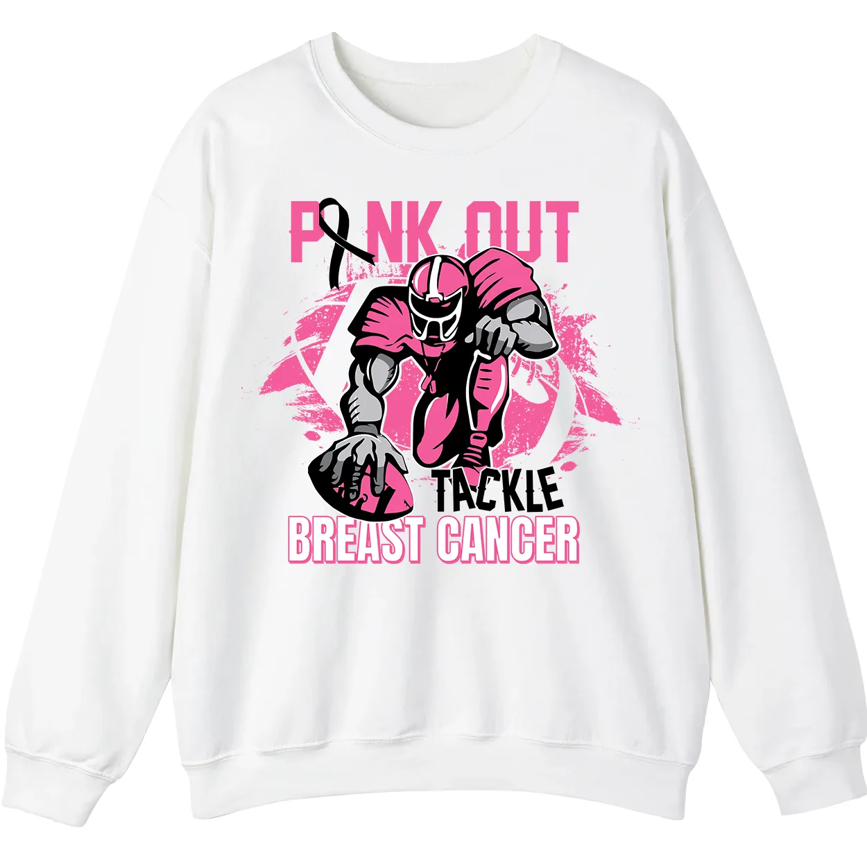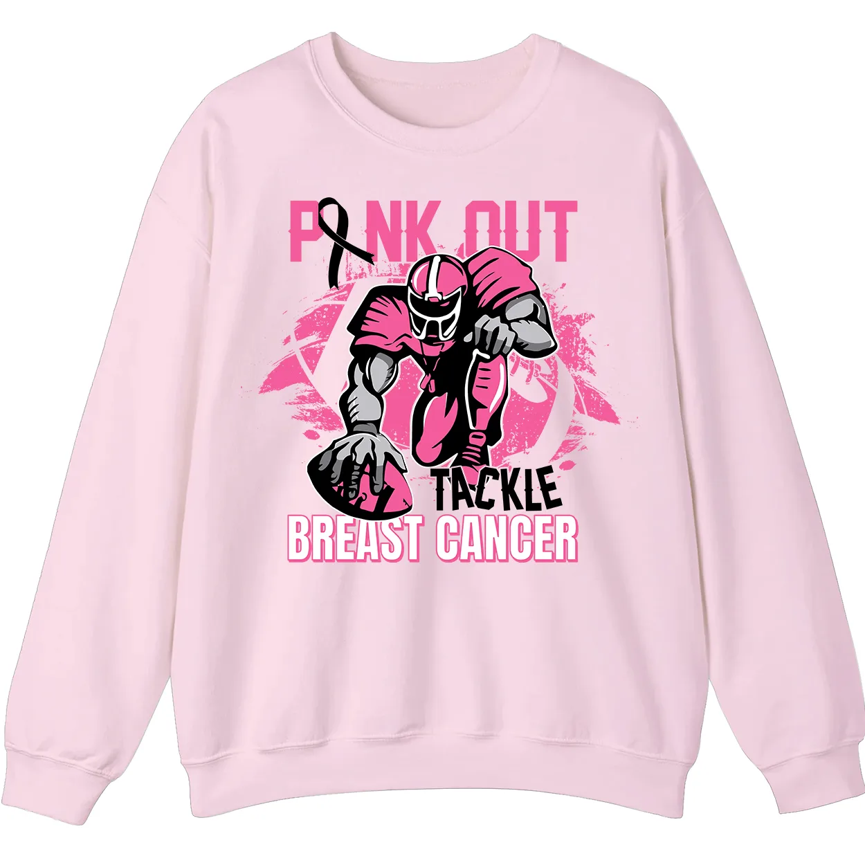Pink Out Football Game Day Sweatshirt, Breast Cancer Awareness Cheerleading Pink Football Crewneck