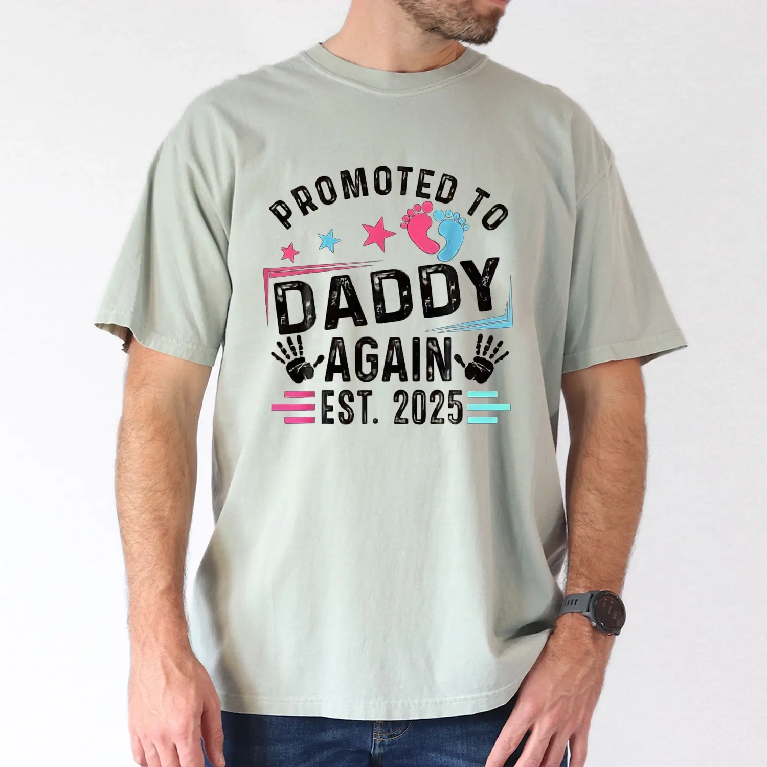 Promoted to Daddy Again Est. 2025 Print Tee T-Shirt, The Best Father’s Day Gift