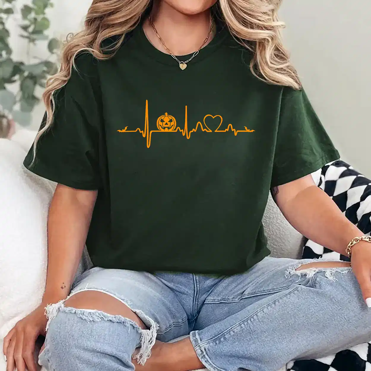 Pumpkin Heartbeat Halloween T-Shirt – Unisex, Gift for Halloween Day, Gift for Mama