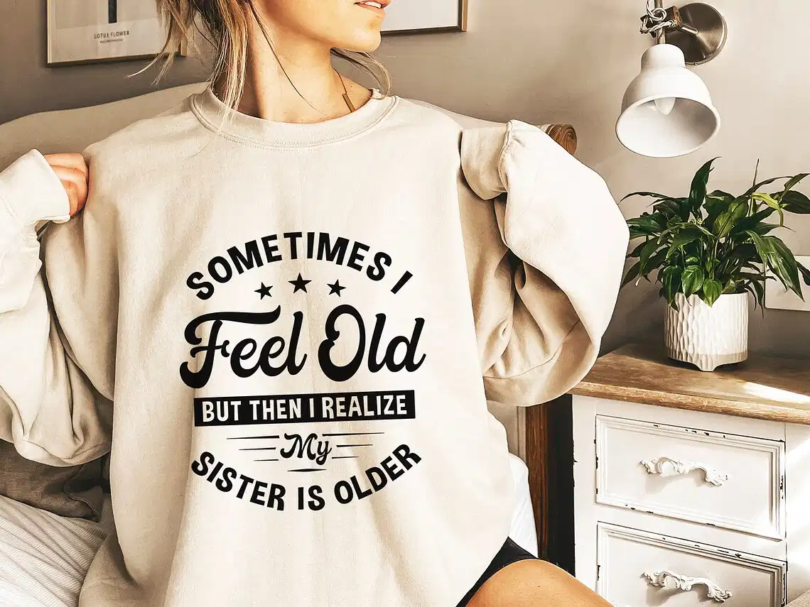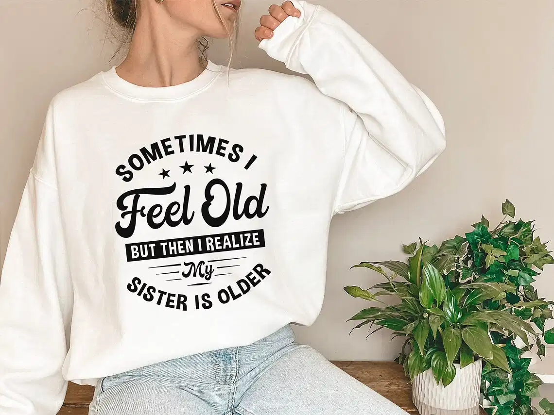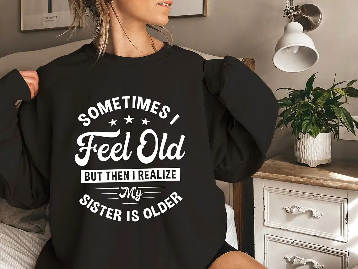 Sometimes I Feel Old But Then I Realize My Sister Is Older Sweatshirt, Sisters Birthday Shirt, Gift For Sister Sarcastic Aunt Shirt, Siblings