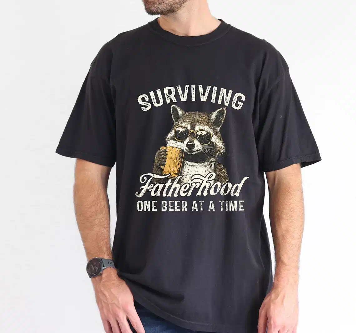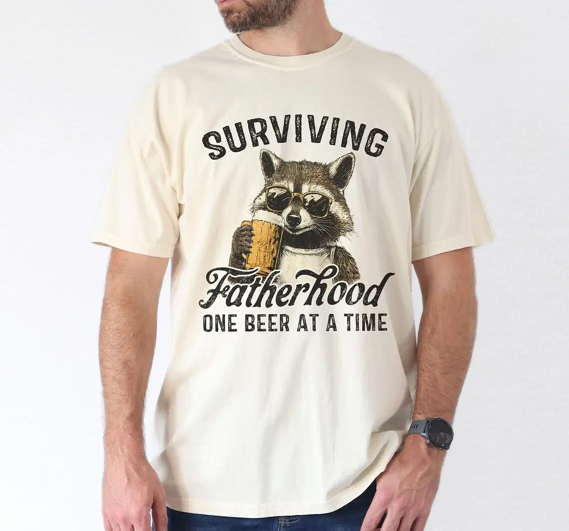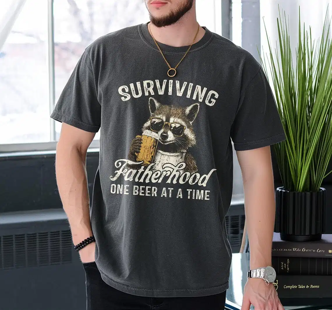 Surviving Fatherhood One Beer At A Time, Funny Father Tee, Drinking Husband, Fathers Day Gift, Gift for Dad, Sarcastic Dad Grandpa T-Shirt
