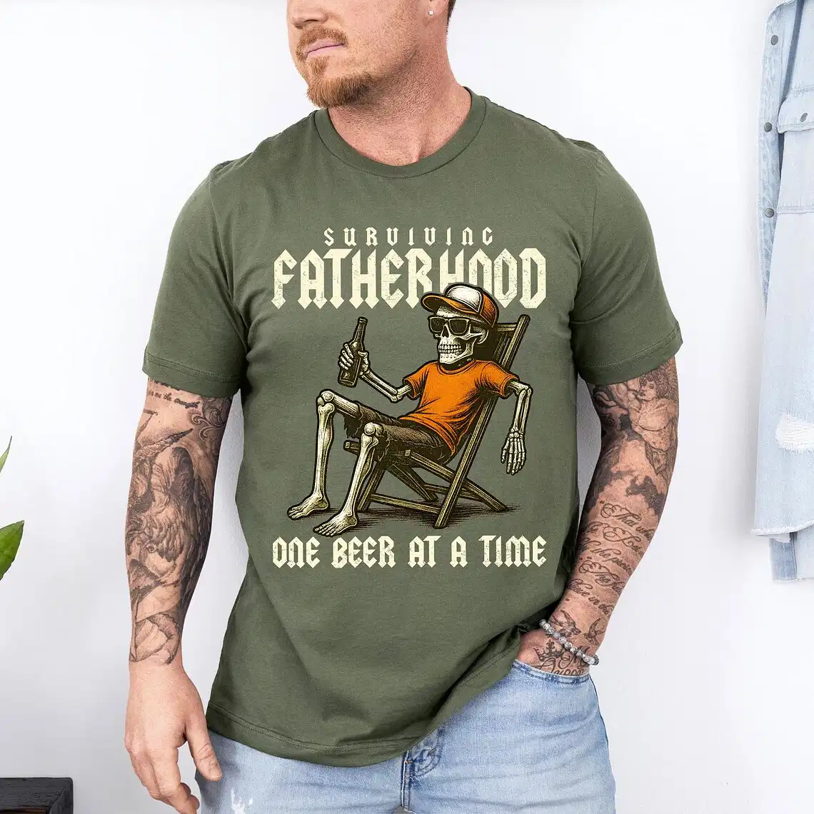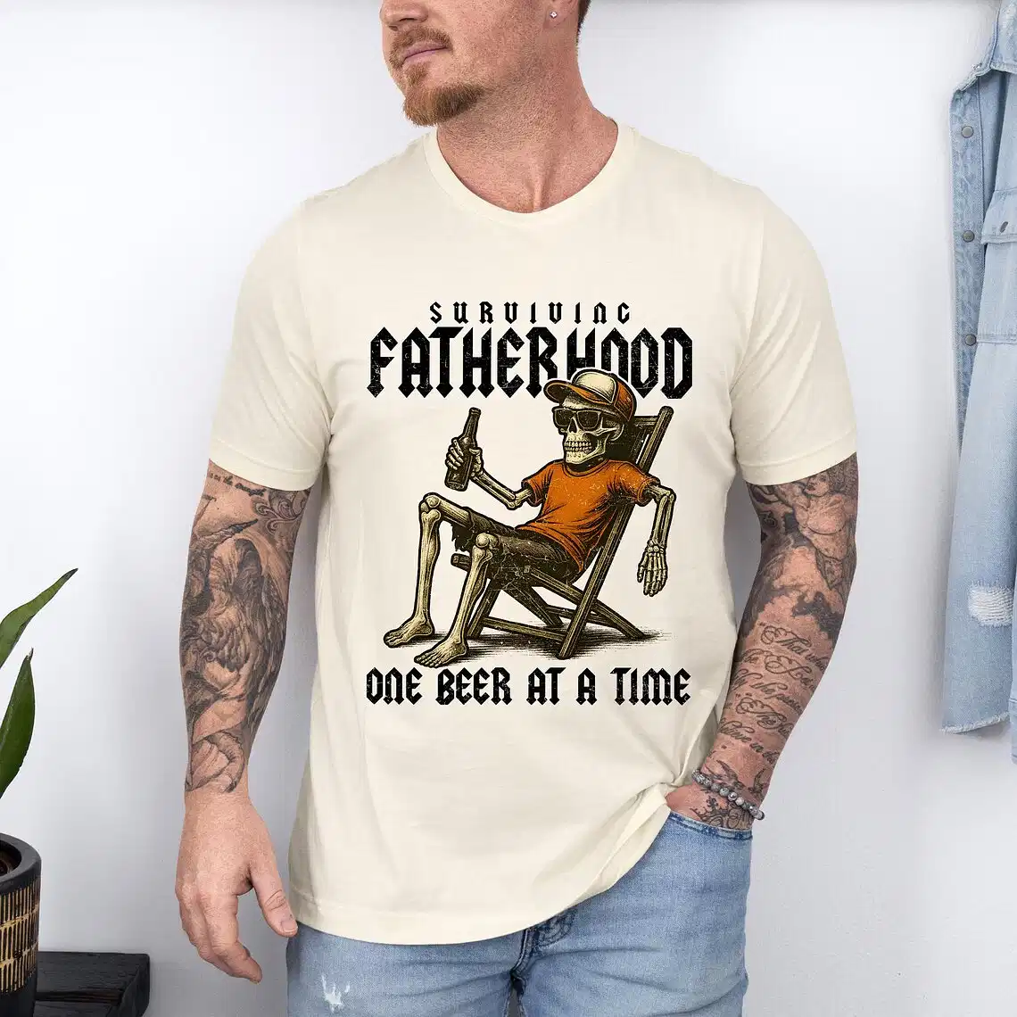 Surviving Fatherhood One Beer At A Time T-Shirt, Funny Dad, Skeleton Dad Shirt, Drinking Husband, Fatherhood Shirt, Father’s Day Gift