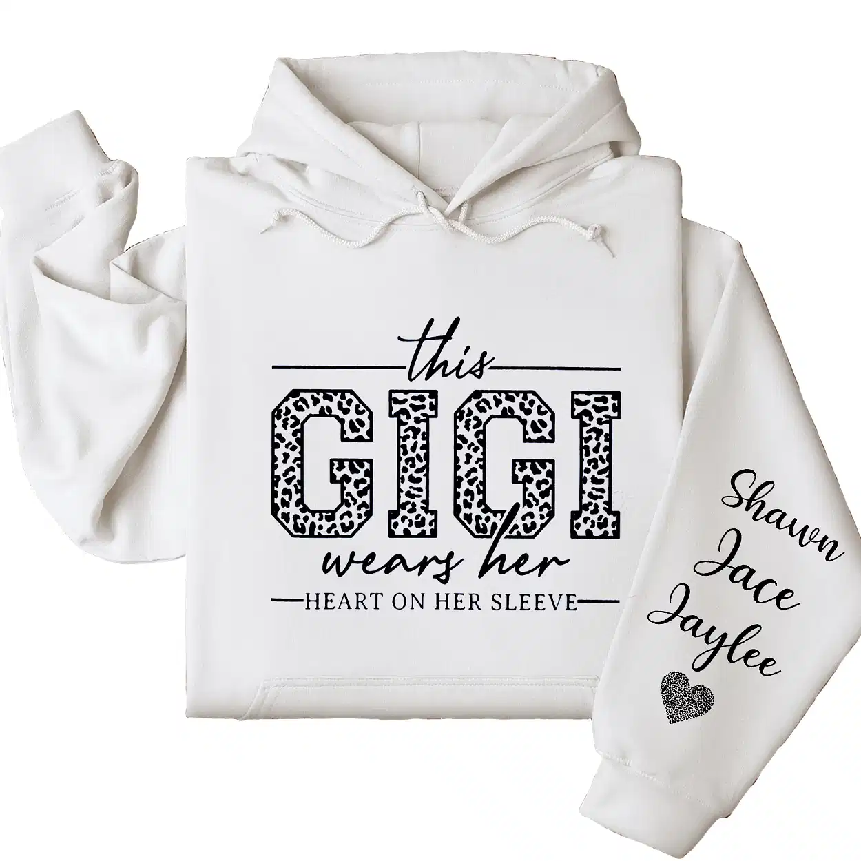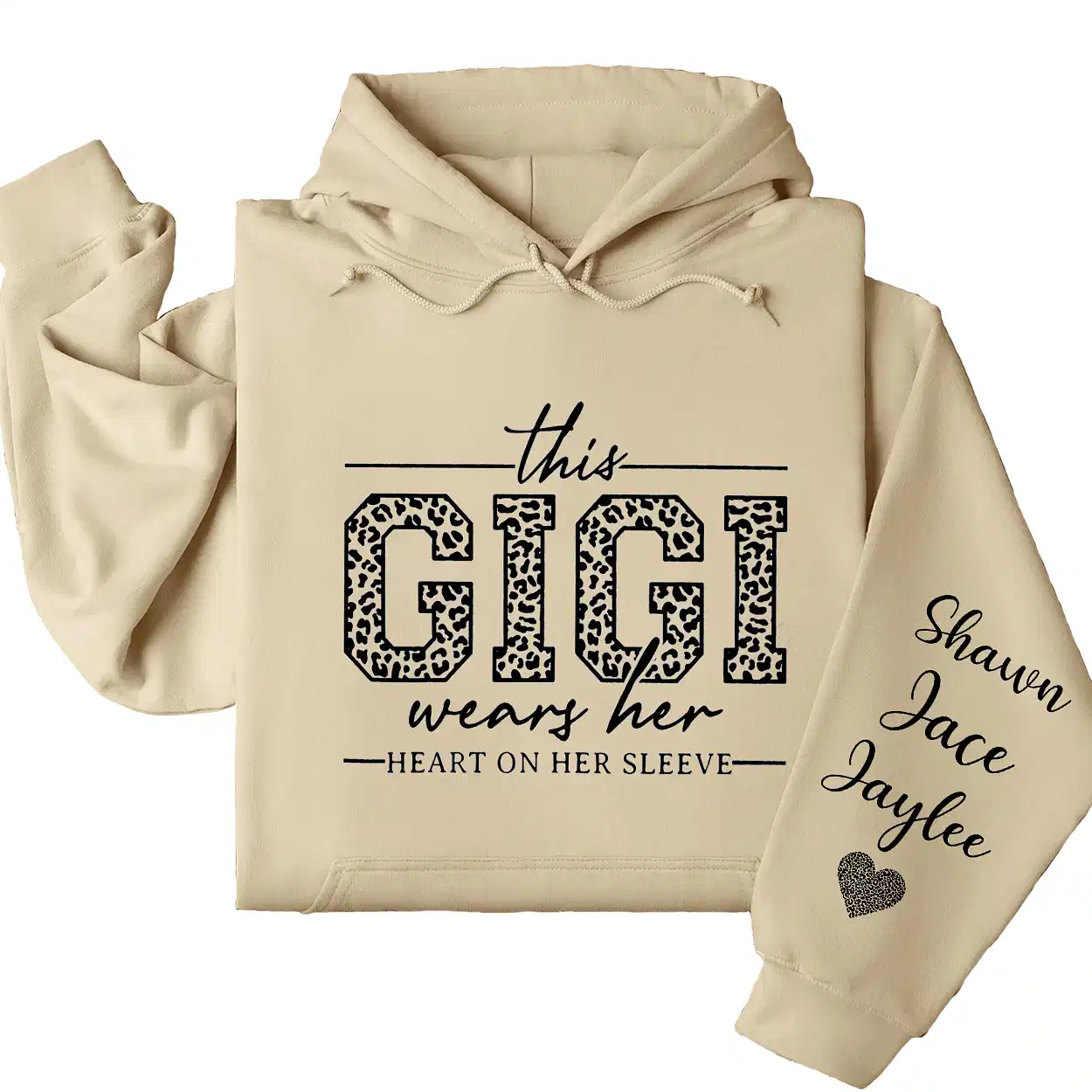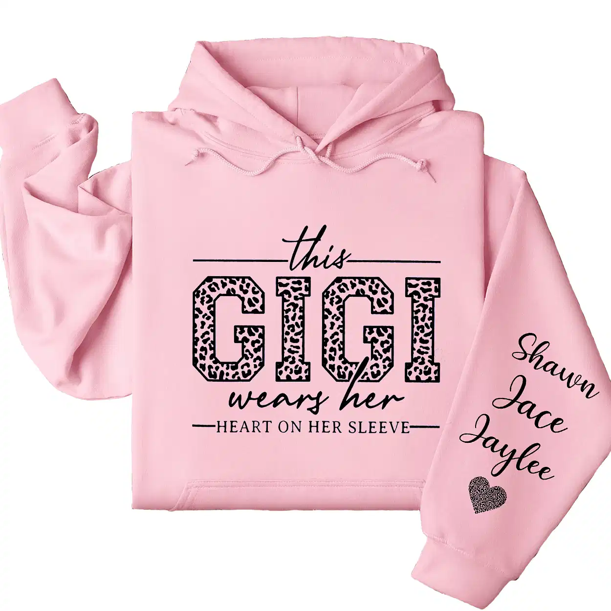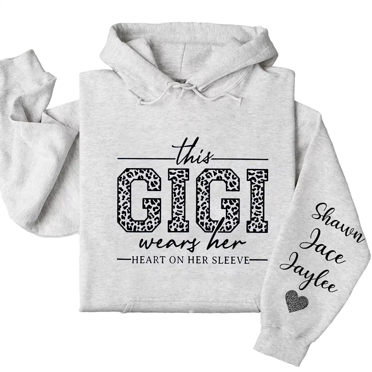 This Gigi Wears Her Heart On Her Sleeve Hoodie – Personalized Leopard Gigi Shirt, Cute Gift for Gigi on Mother’s Day or Holiday