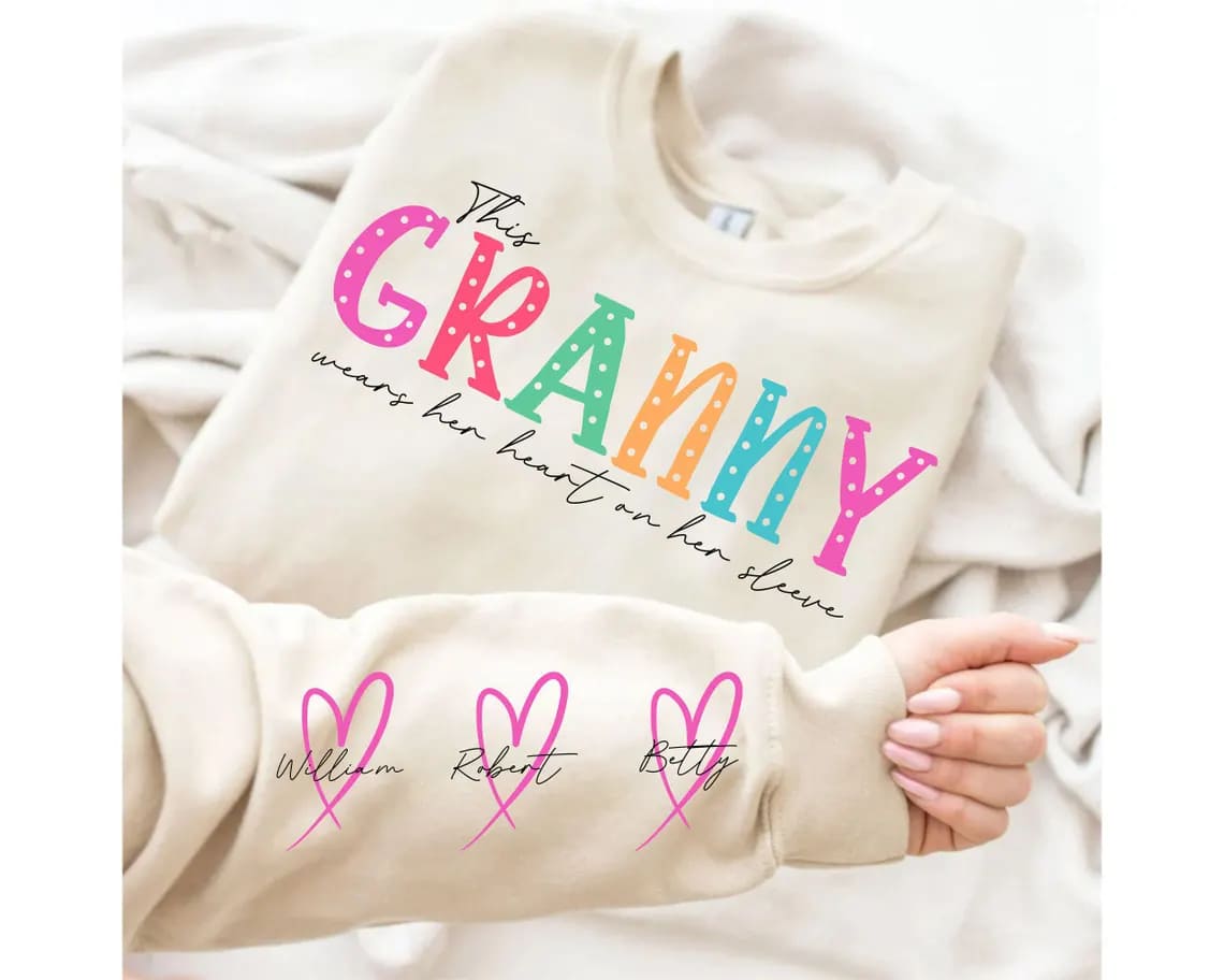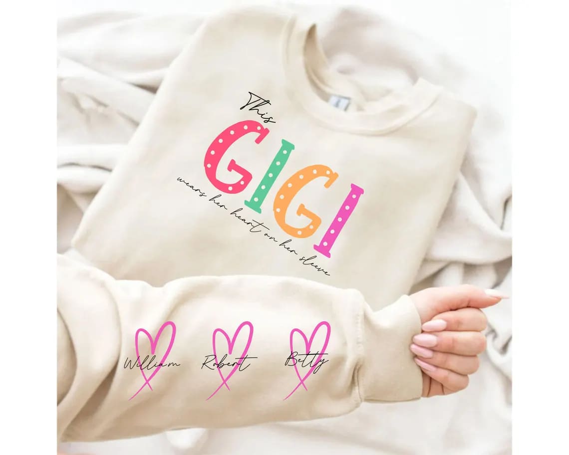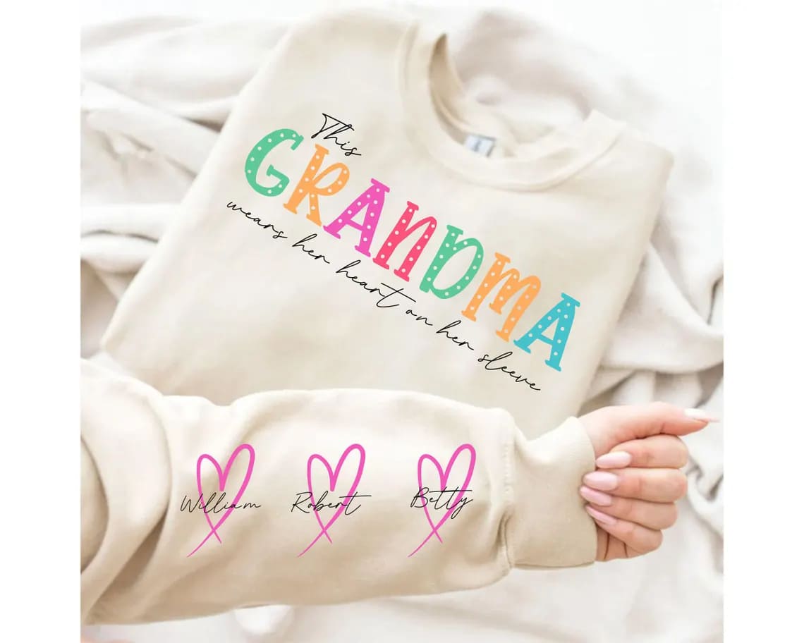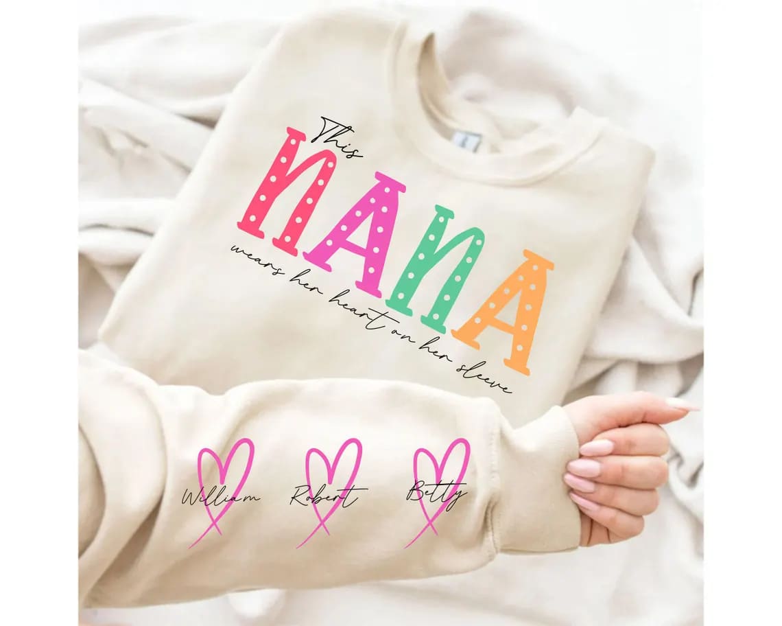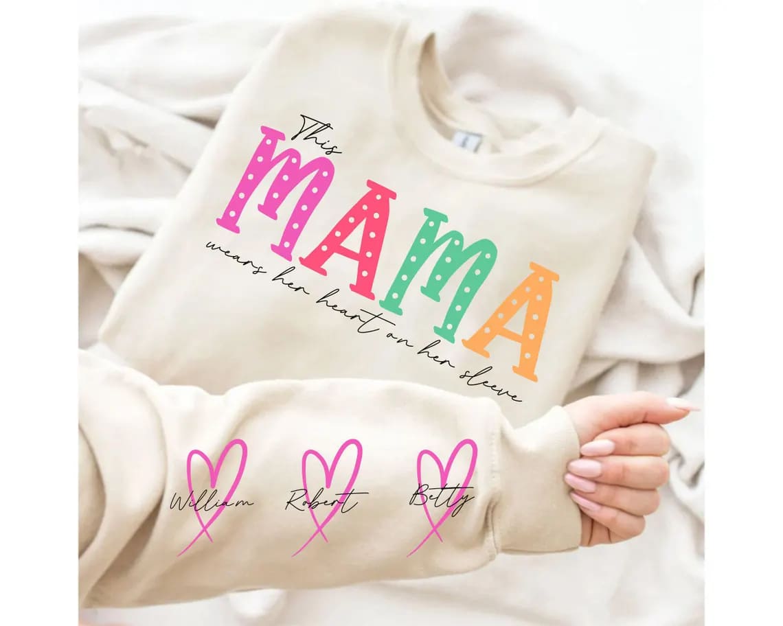 This Mama/Grandma/Nana Wears Her Heart On Her Sleeve, Custom Mama with Name Kids Sweatshirt- The Best Mothers Day Gift