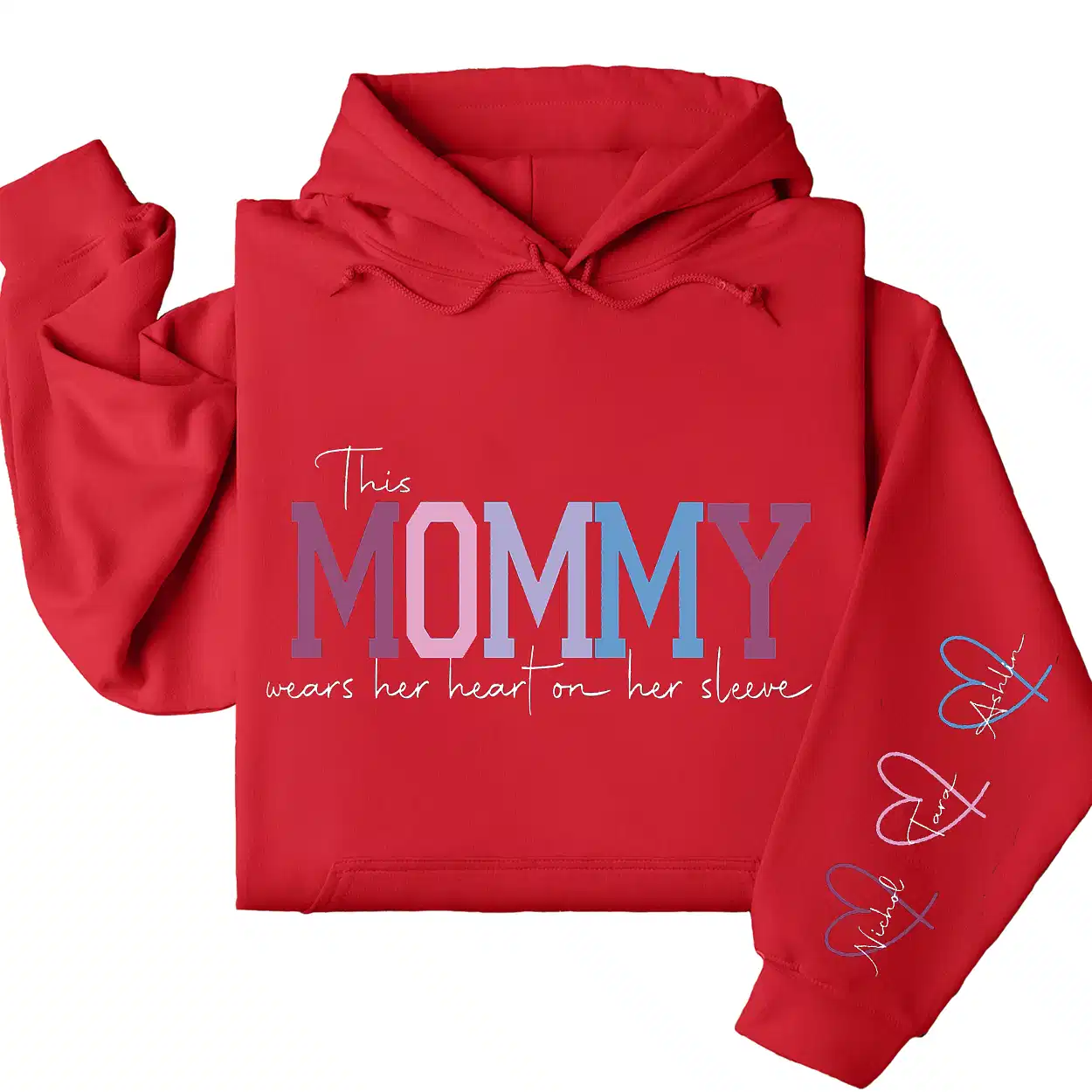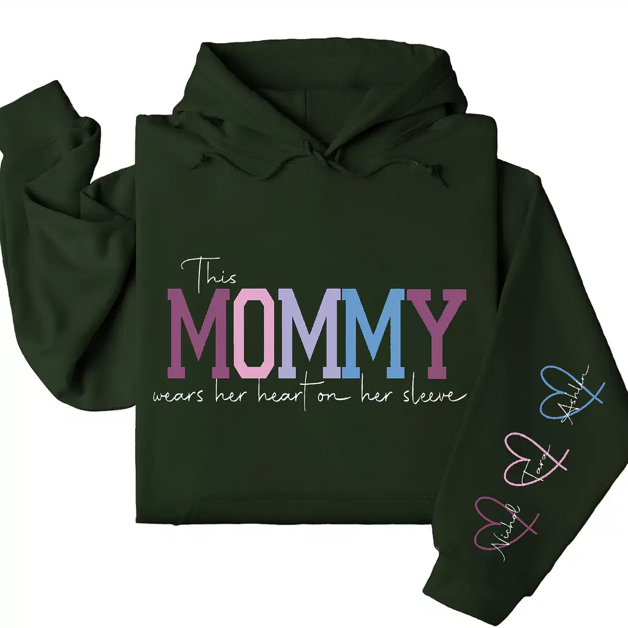 This Mama Wears Her Heart on Her Sleeve Hoodie – Custom Hoodie with Kids’ Names, Personalized Mother’s Day Gift for Mama