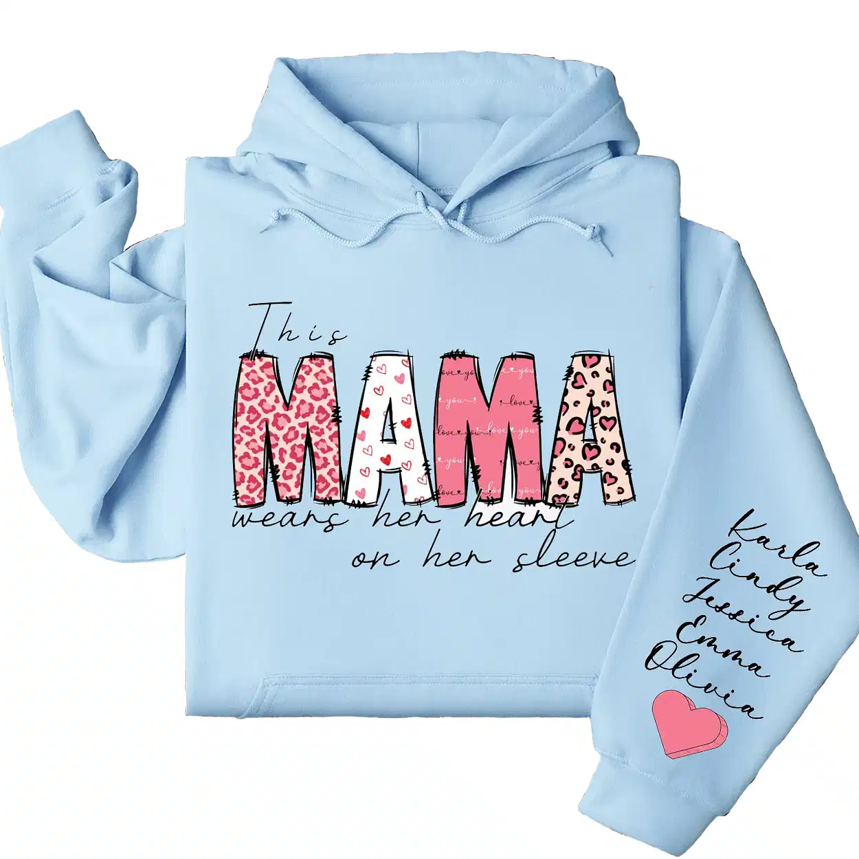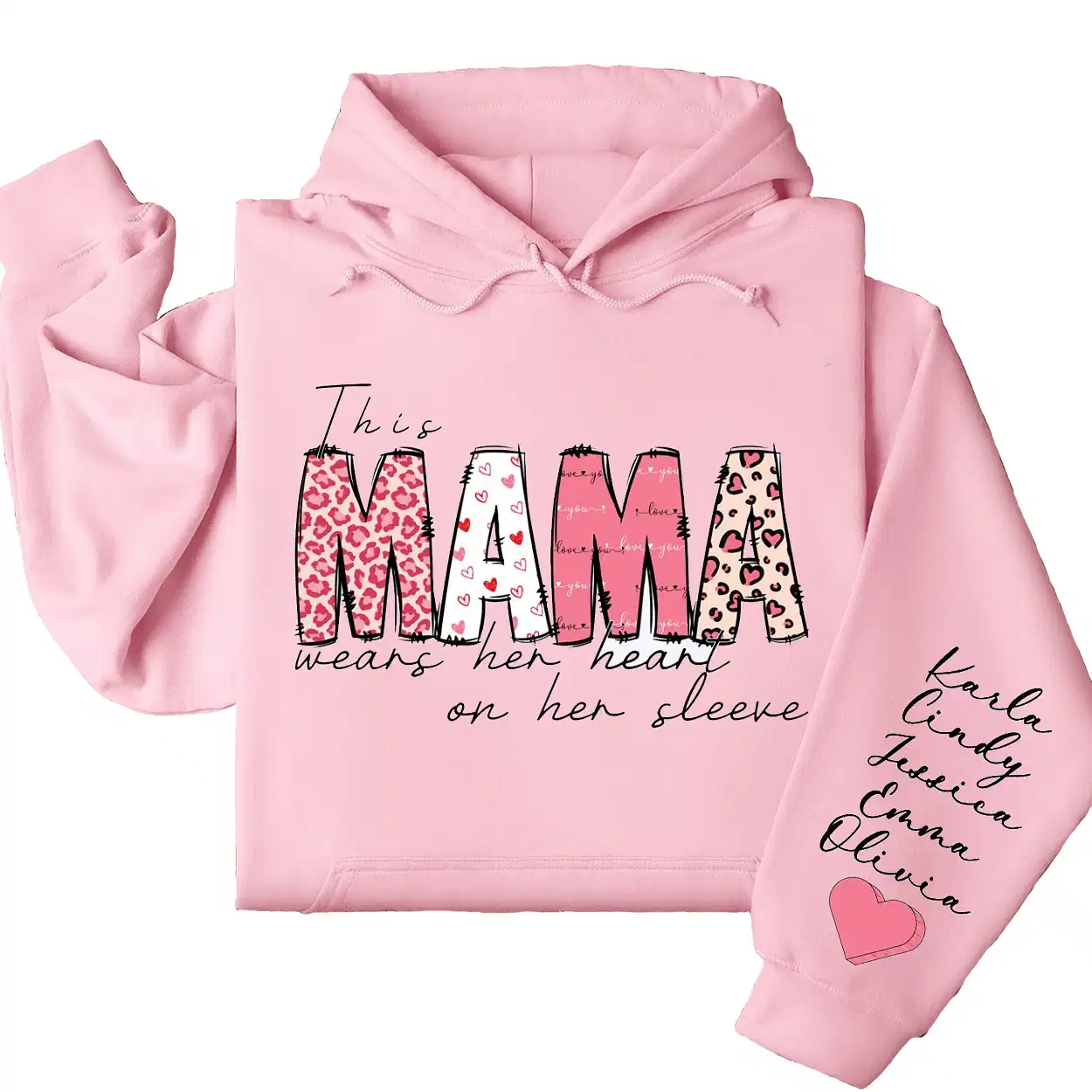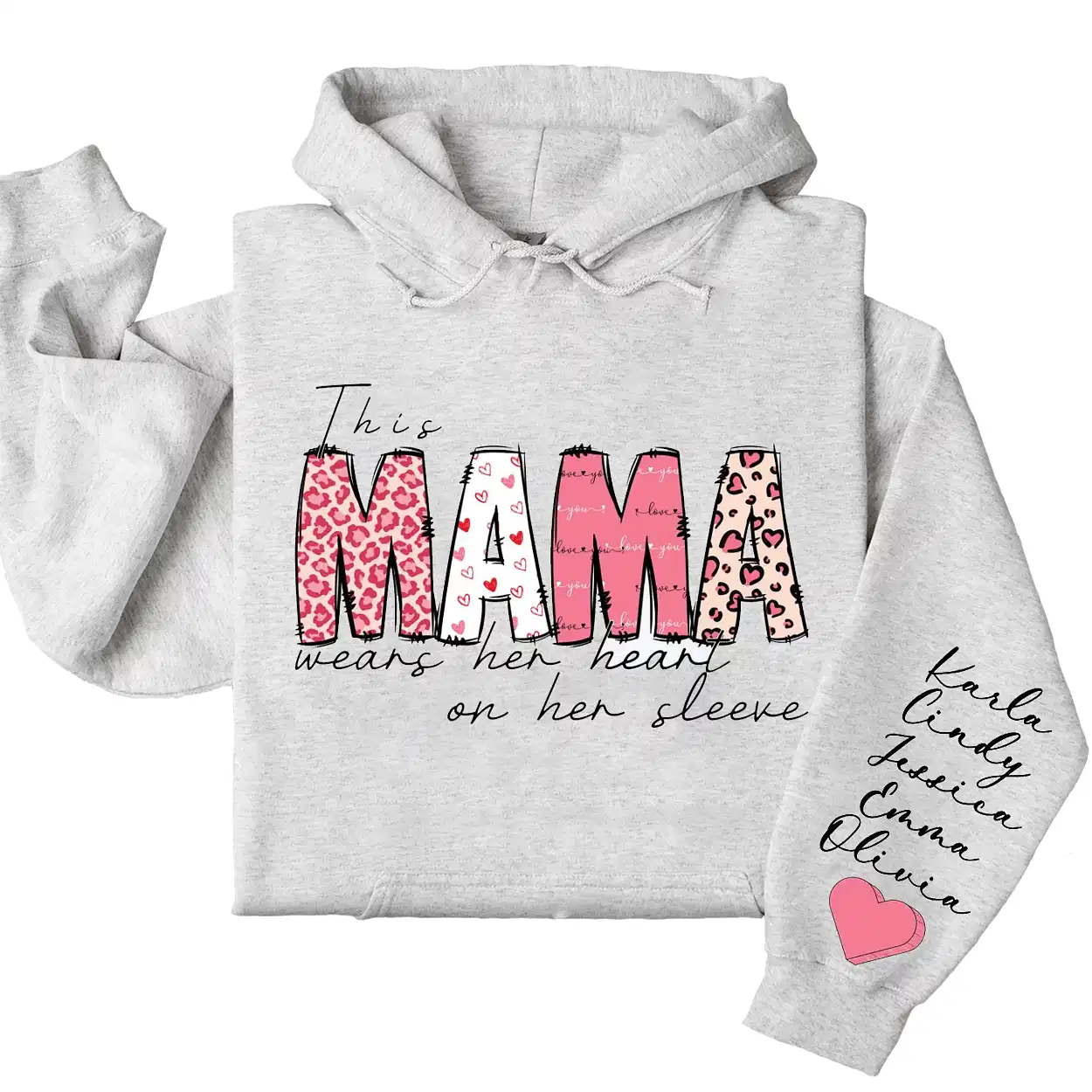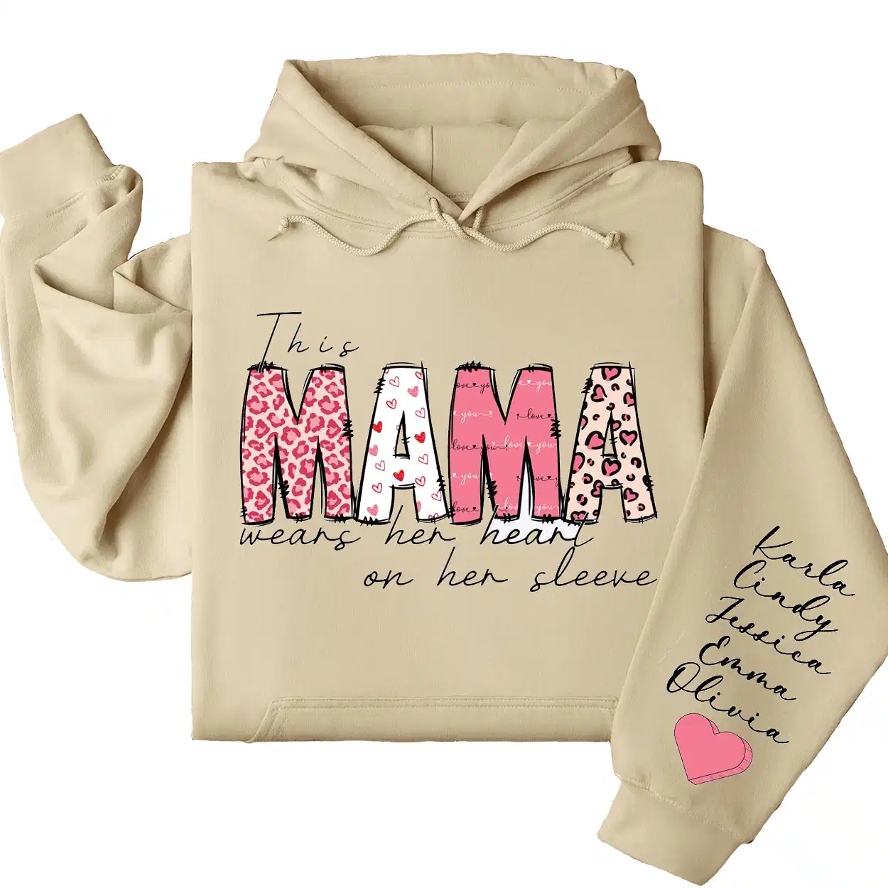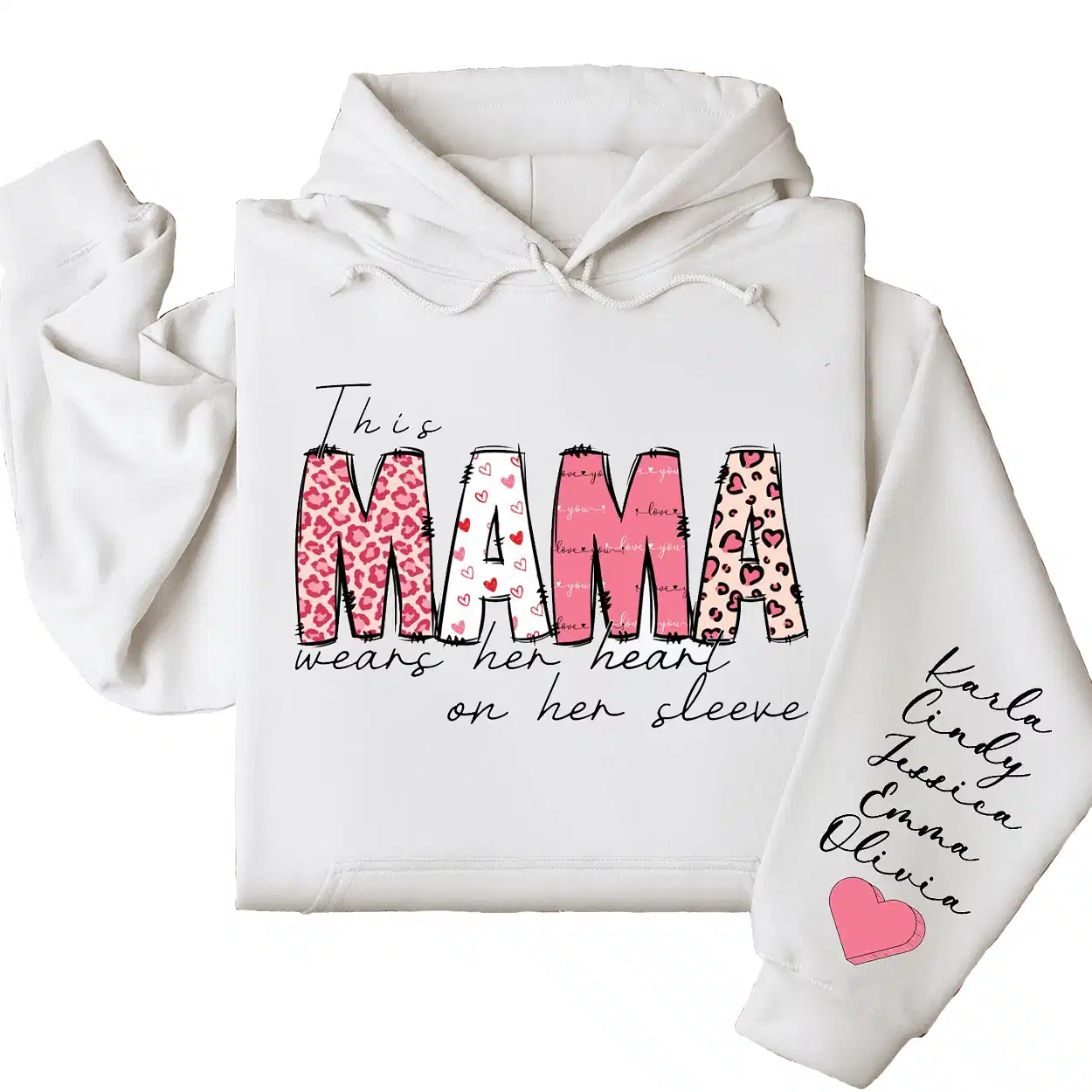This Mama Wears Her Heart on Her Sleeve Hoodie – Custom Hoodie with Kids’ Names, Personalized Mother’s Day Gift for Mama
