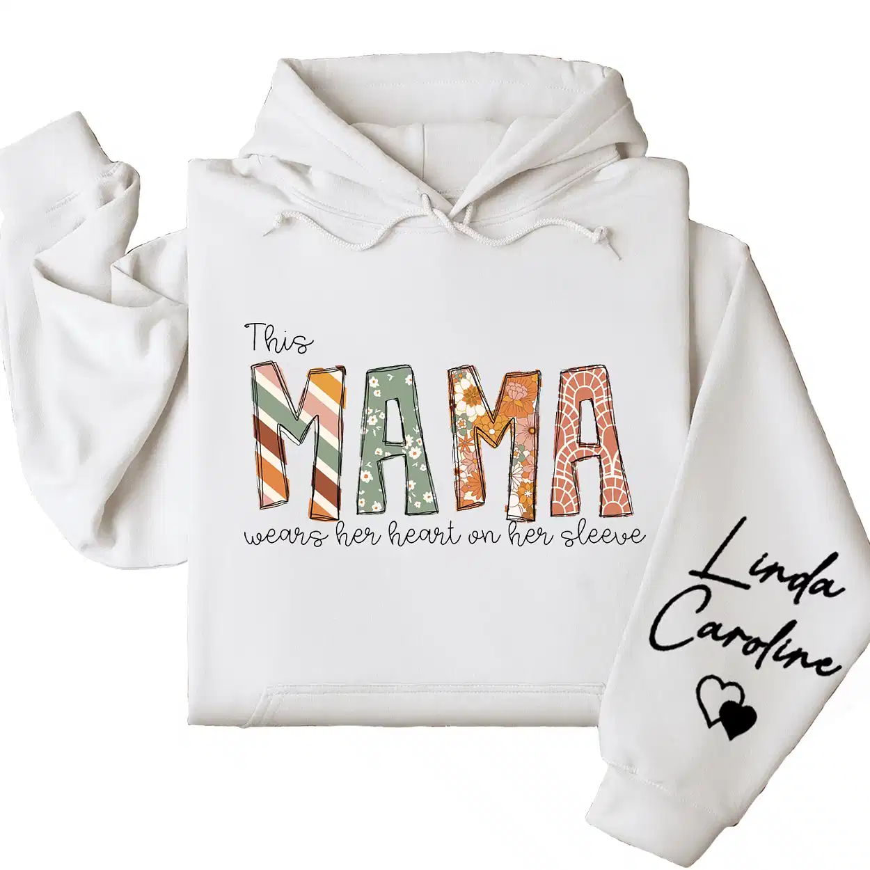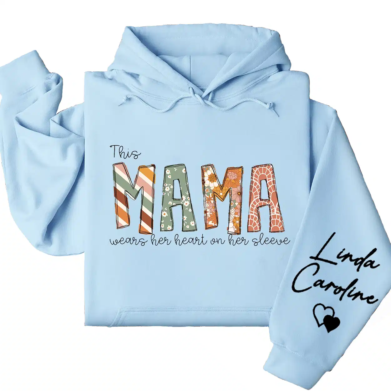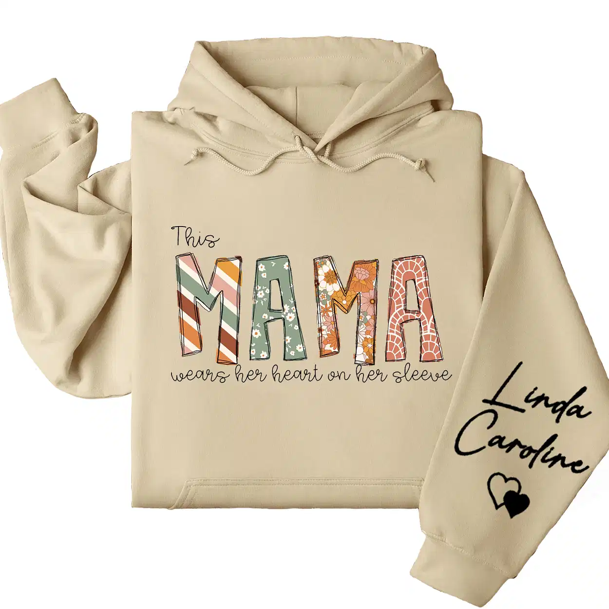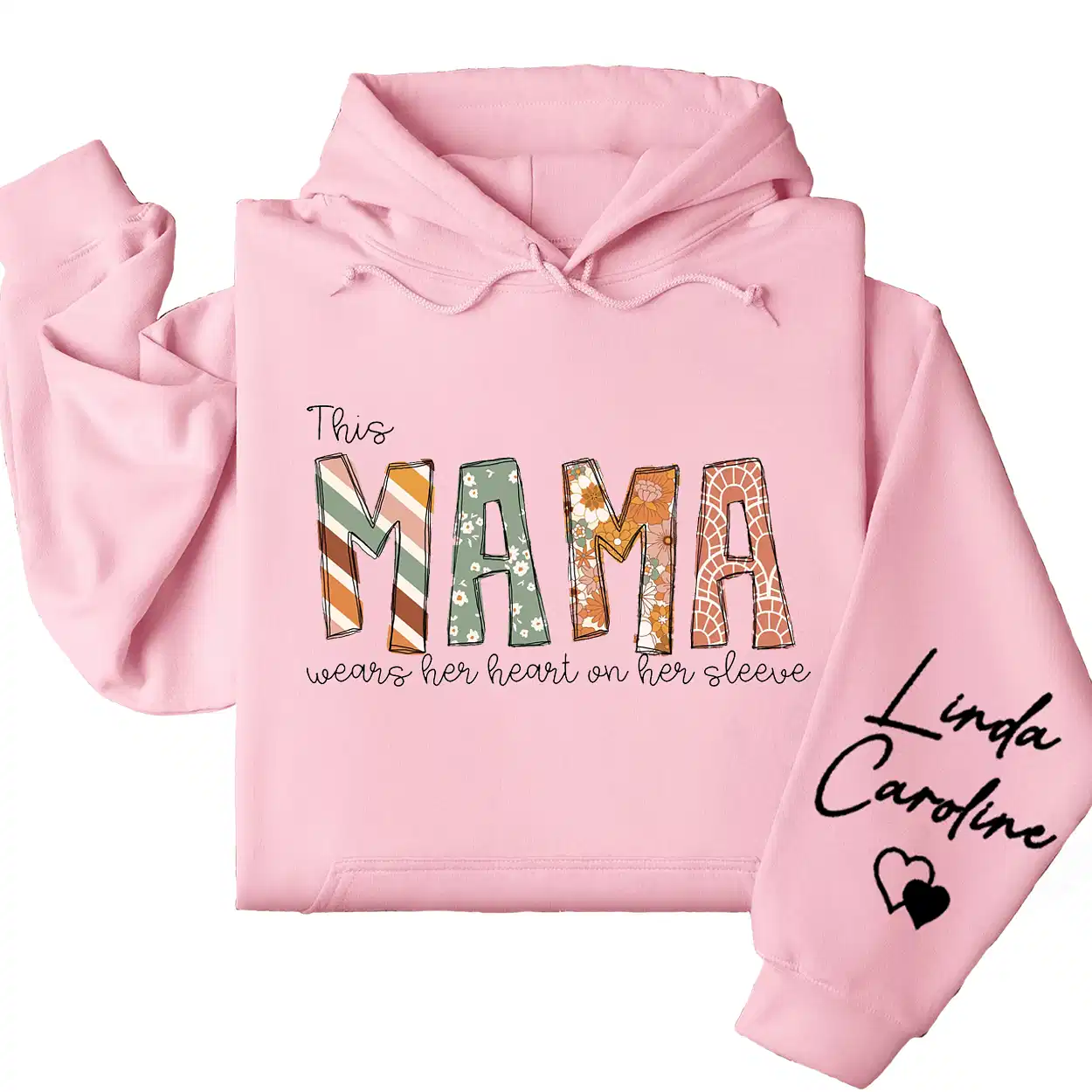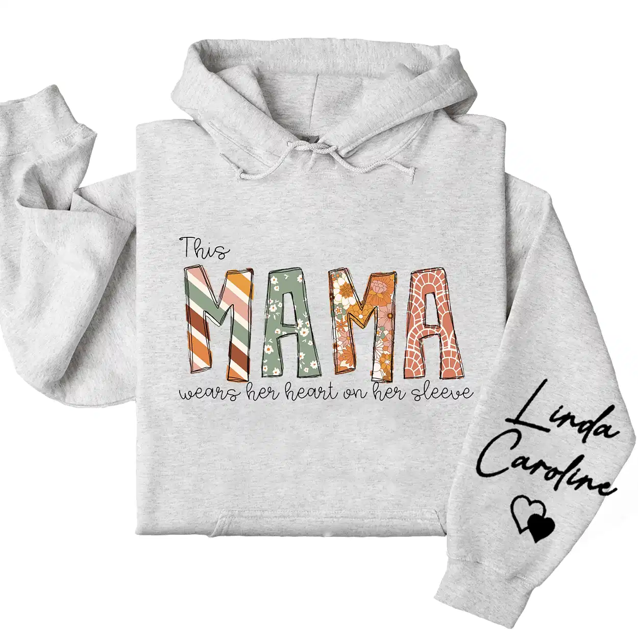 This Mama Wears Her Heart on Her Sleeve Hoodie – Custom Kids Names Hoodie for Mom