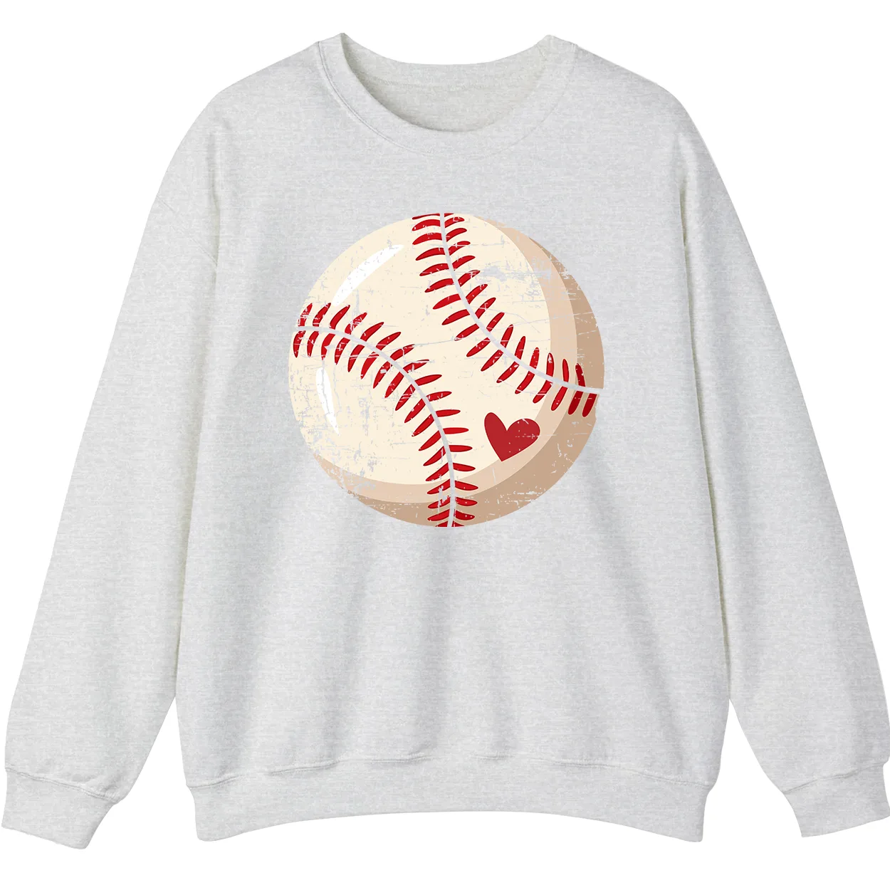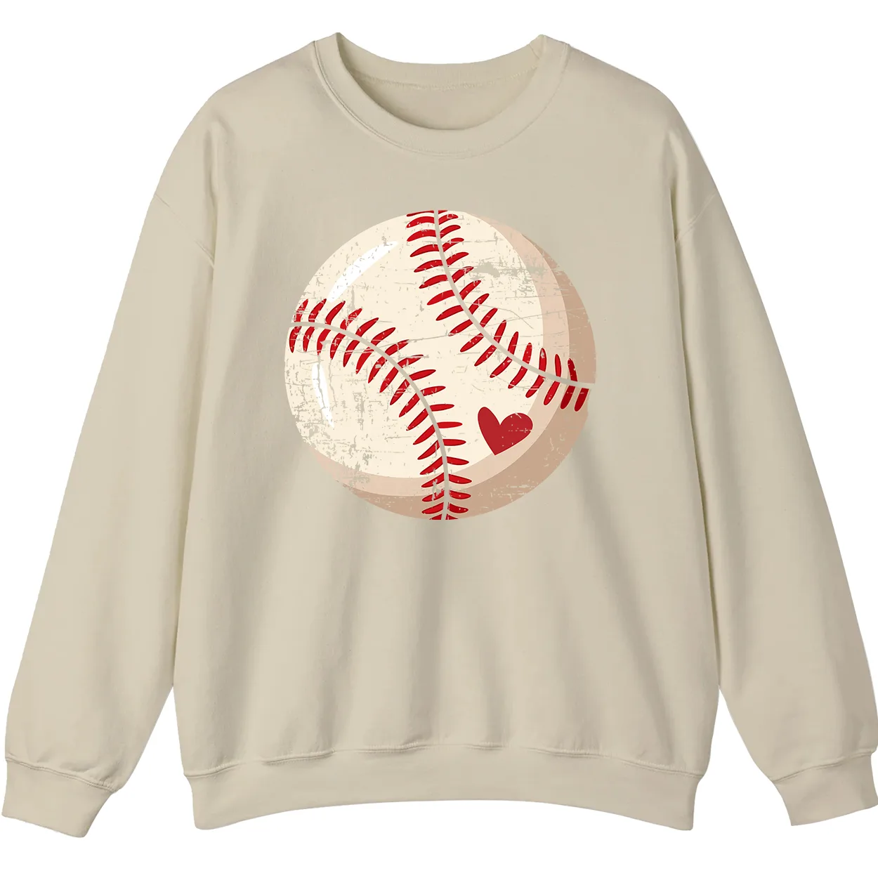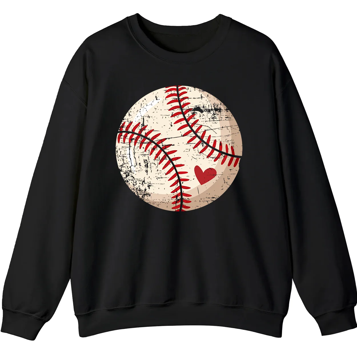 Vintage Baseball Heart Design Pullover Sweater Unisex
